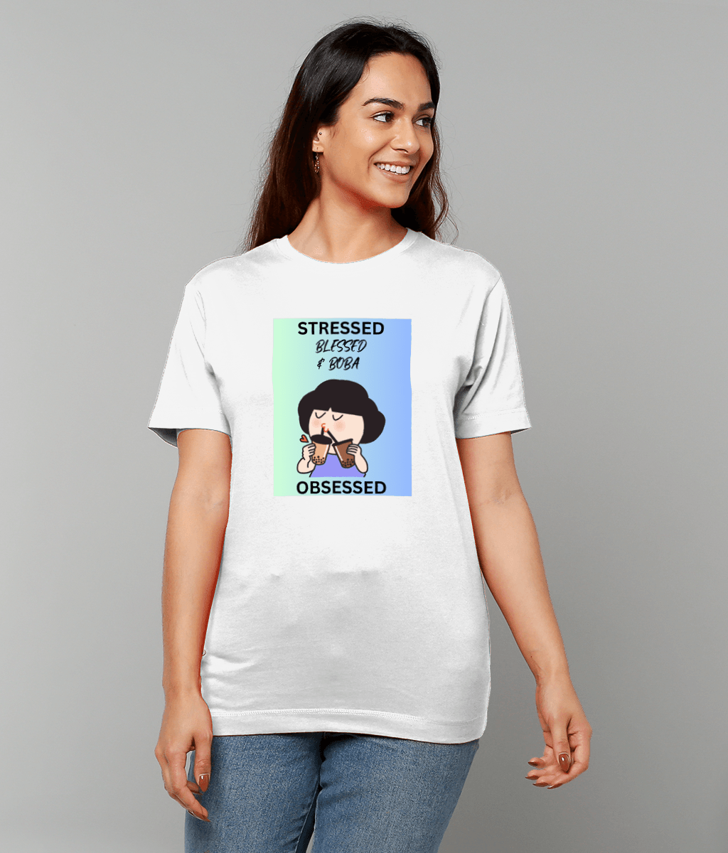 & boba obsessed” neatly printed, this t-shirt is a must-have for all