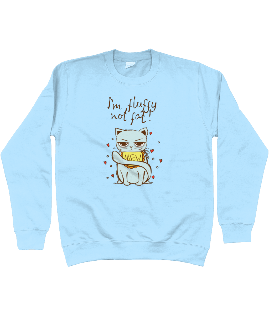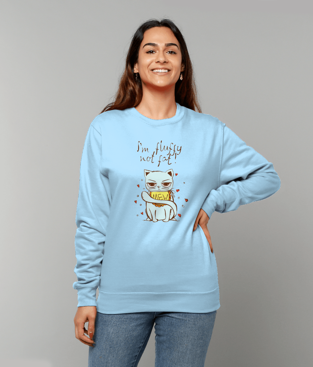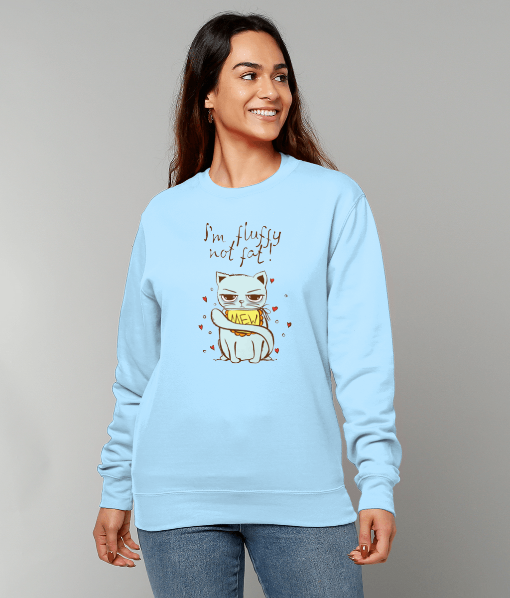 Adding a touch of whimsy to your wardrobe, the front of the sweatshirt boasts an endearing graphic featuring a fluffy and grumpy cat. This charming design is not only a visual treat but also a playful expression of individuality, making it a standout piece for cat lovers and fashion enthusiasts alike.