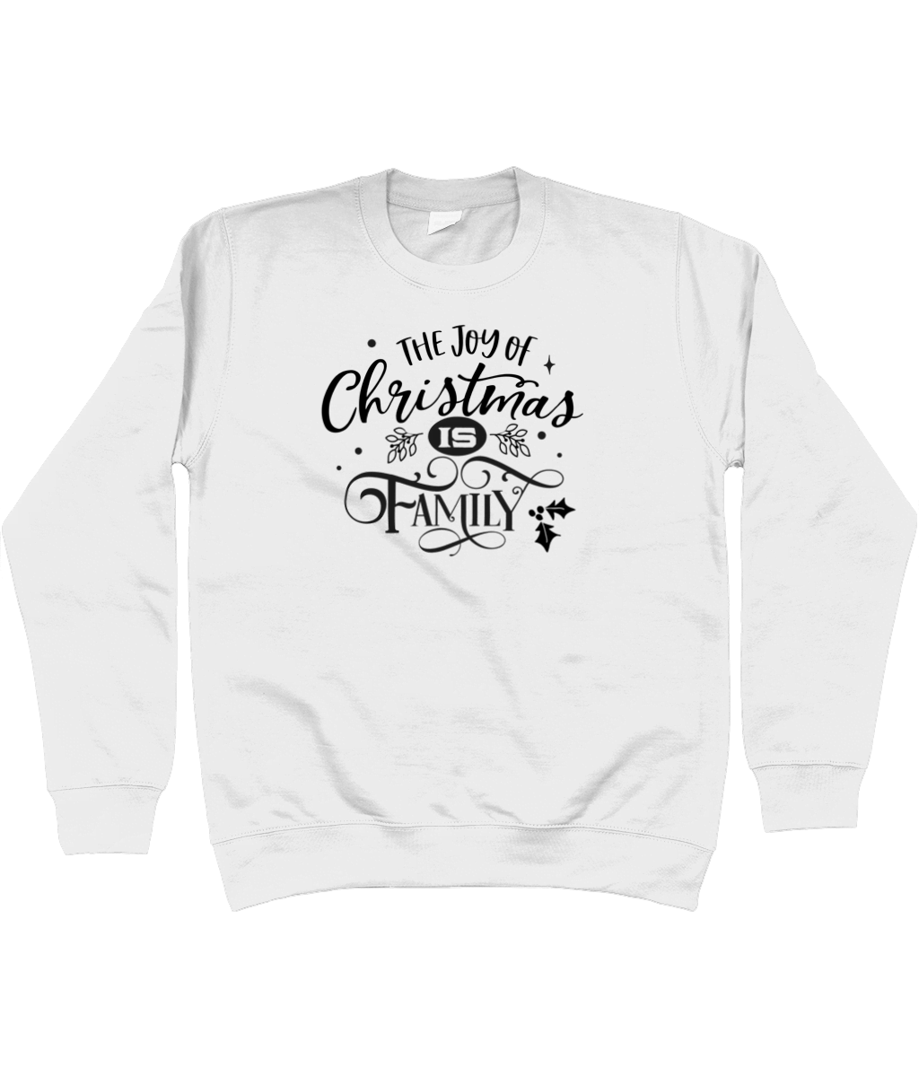 Featuring a thoughtful and festive typography design that reads “The joy of Christmas is family,” this sweatshirt serves as a visual reminder of the true essence of the season. The carefully chosen font and design elements add a touch of sophistication while conveying the heartfelt message of togetherness and love.